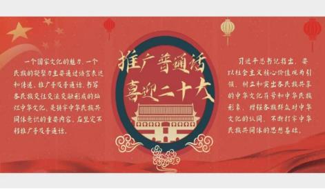 第25届全国推广普通话宣传周于9月12日至18日举行,本届推普周的主题为“推广普通话,喜迎二十大”。云南省国家通用语言文字推广基地、学校教务处、校语委办联合举办了“第25届推普周昆明学院优秀宣传展板比赛”,为党的二十大胜利召开营造良好氛围。