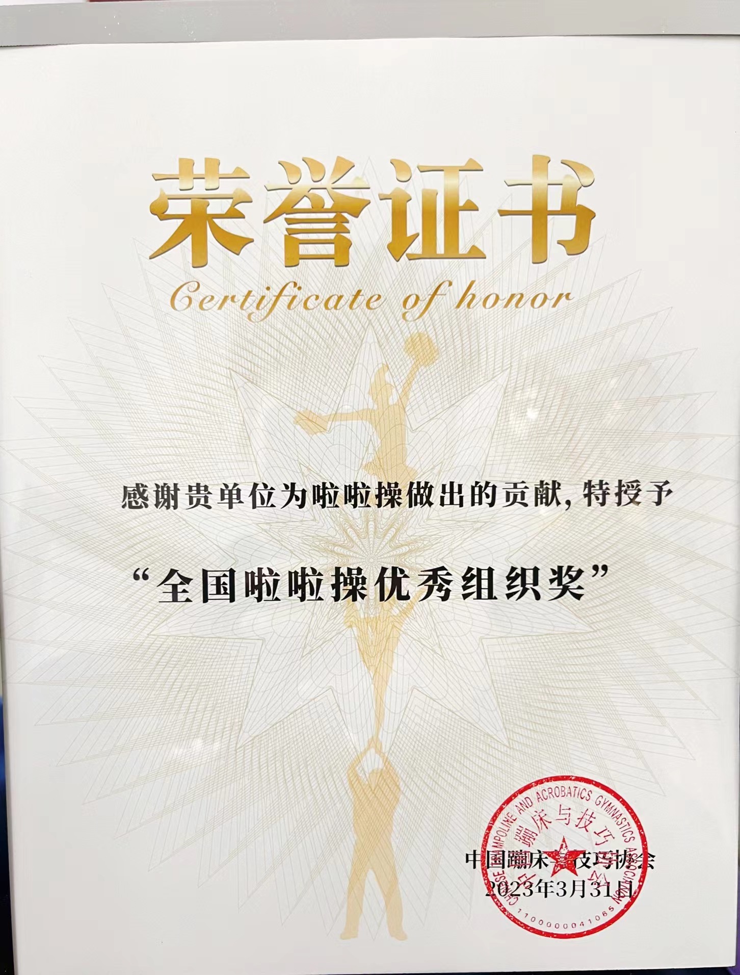 在本届中国啦啦操文化纪各项目评选中,我校学前与特殊教育学院Jungle Warriors啦啦队获评“全国啦啦操二星级俱乐部”,并荣获“全国啦啦操优秀组织奖”。