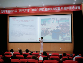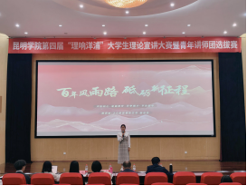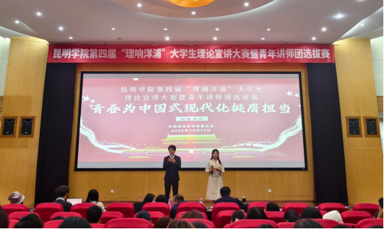 10月24日,昆明学院第四届“理响洋浦”大学生理论宣讲大赛暨青年讲师团选拔赛校级总决赛在惟行楼1501圆满举行。来自全校的20位优秀青年学子围绕学习宣传贯彻习近平新时代中国特色社会主义思想,用青春之声传递理论力量,用最鲜活的语言、最饱满的情感、最动人的故事,让党的创新理论直抵人心。