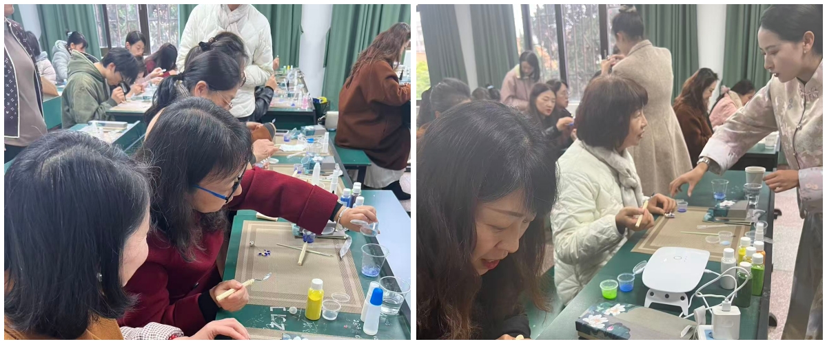 赋能“她力量”:活动从讲座到实践到传承,将传统文化融入凝聚巾帼向心力中。一件件掐丝珐琅作品在师生的指尖成型,金丝与彩砂交织出绚丽纹样,既有传统文化的厚重底蕴,又有创新进取的鲜活力量。