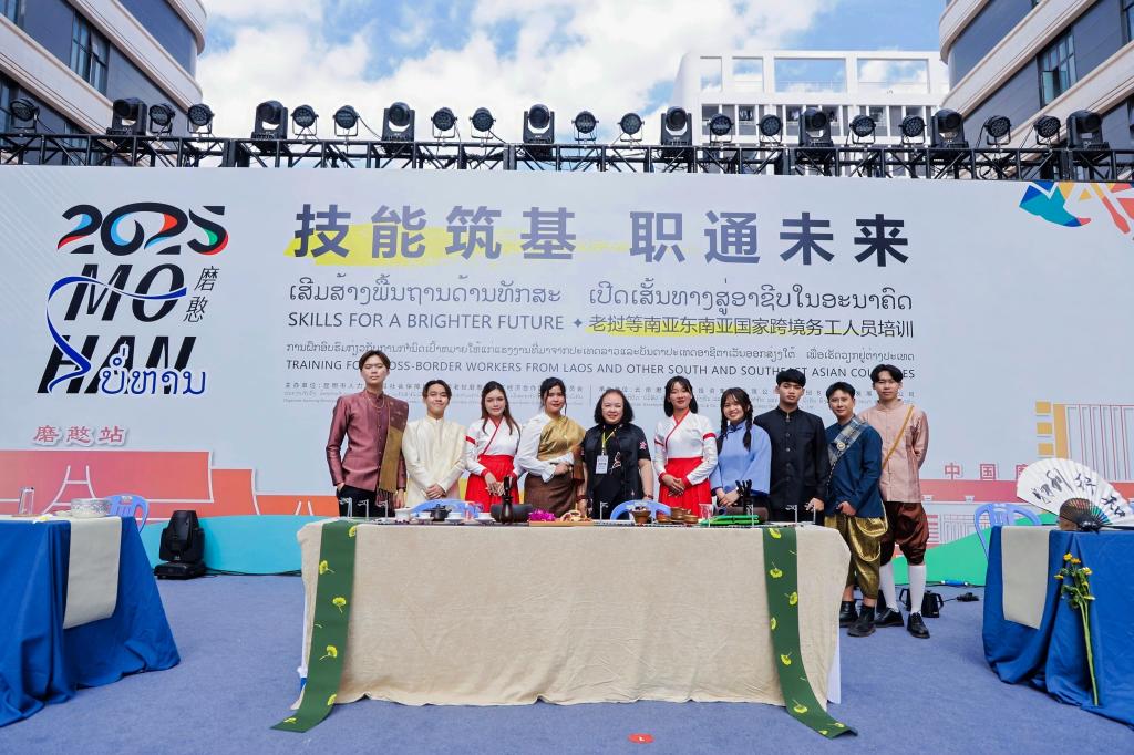 在中老铁路开通四周年之际,12月9日,昆明学院老挝籍、柬埔寨籍留学生代表赴磨憨口岸参加纪念活动,以特色茶礼展示为纽带,奏响了一曲“茶香随铁轨流淌”的文明对话乐章。