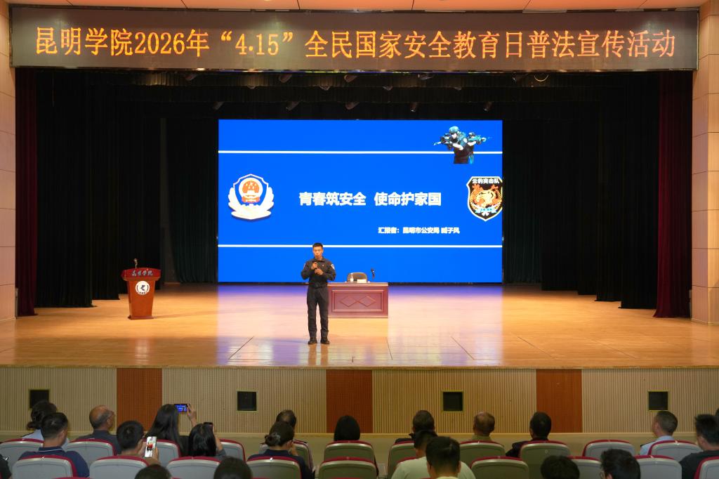 4月14日下午,昆明学院2026年“4·15”全民国家安全教育日普法宣传活动于学生会堂启动。本次活动由昆明学院主办,昆明市公安局经济技术开发区分局、昌宏路派出所协办。
