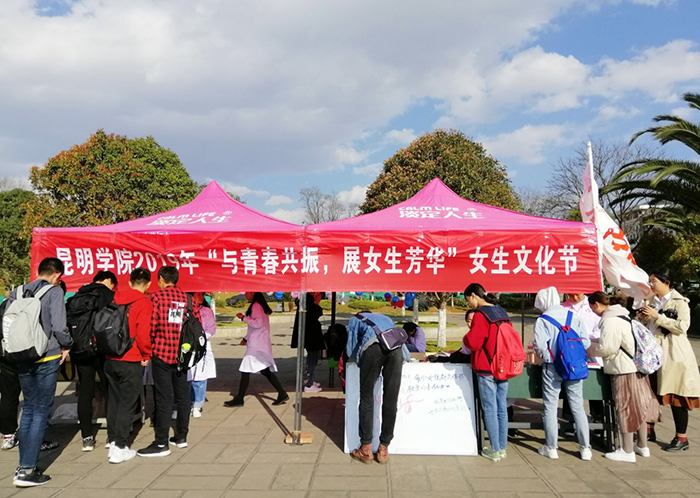 3月7日—3月11日,我校2019年“与青春共振,展女生芳华”女生文化节在聂耳广场成功举办。此次活动由共青团昆明学院委员会主办,医学院团总支学生会承办,活动面向全体师生。