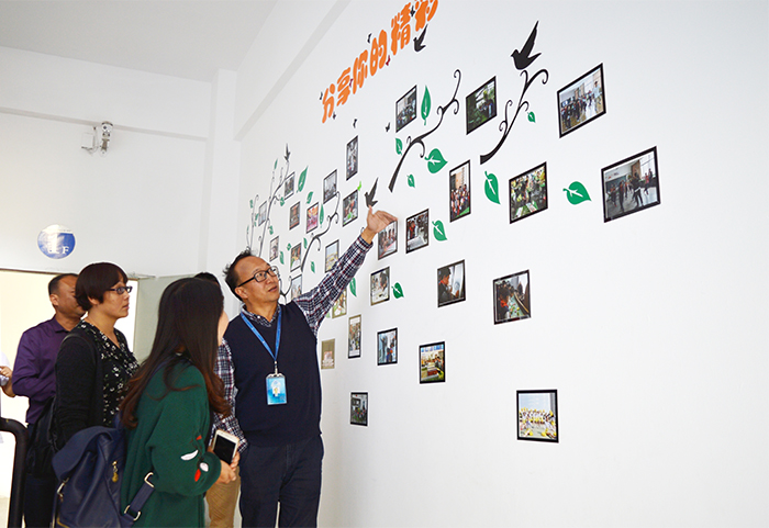 在李晋德校长的陪同下,一行人参观了我校的校园文化建设,对二楼楼梯间和读书吧进行参观指导。李校长指出,经过全校师生的共同努力,校园文化建设越来越成熟,希望通过不断努力创造环境,为全校师生共同营造一个良好的学习生活环境,在孩子们的心灵中塑造美的教育。同行的泸西县旧城镇初级中学李俊校长对我校的校园文化建设给予很高的评价。