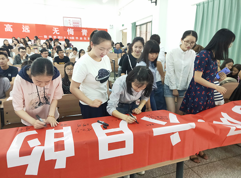 2019届毕业生在数学学院2019届毕业生教育布标上签字留念并领取毕业明信片,他们表示一定不辜负学校和数学学院的重托,通过自己的努力,为昆明学院的发展做出积极的贡献。