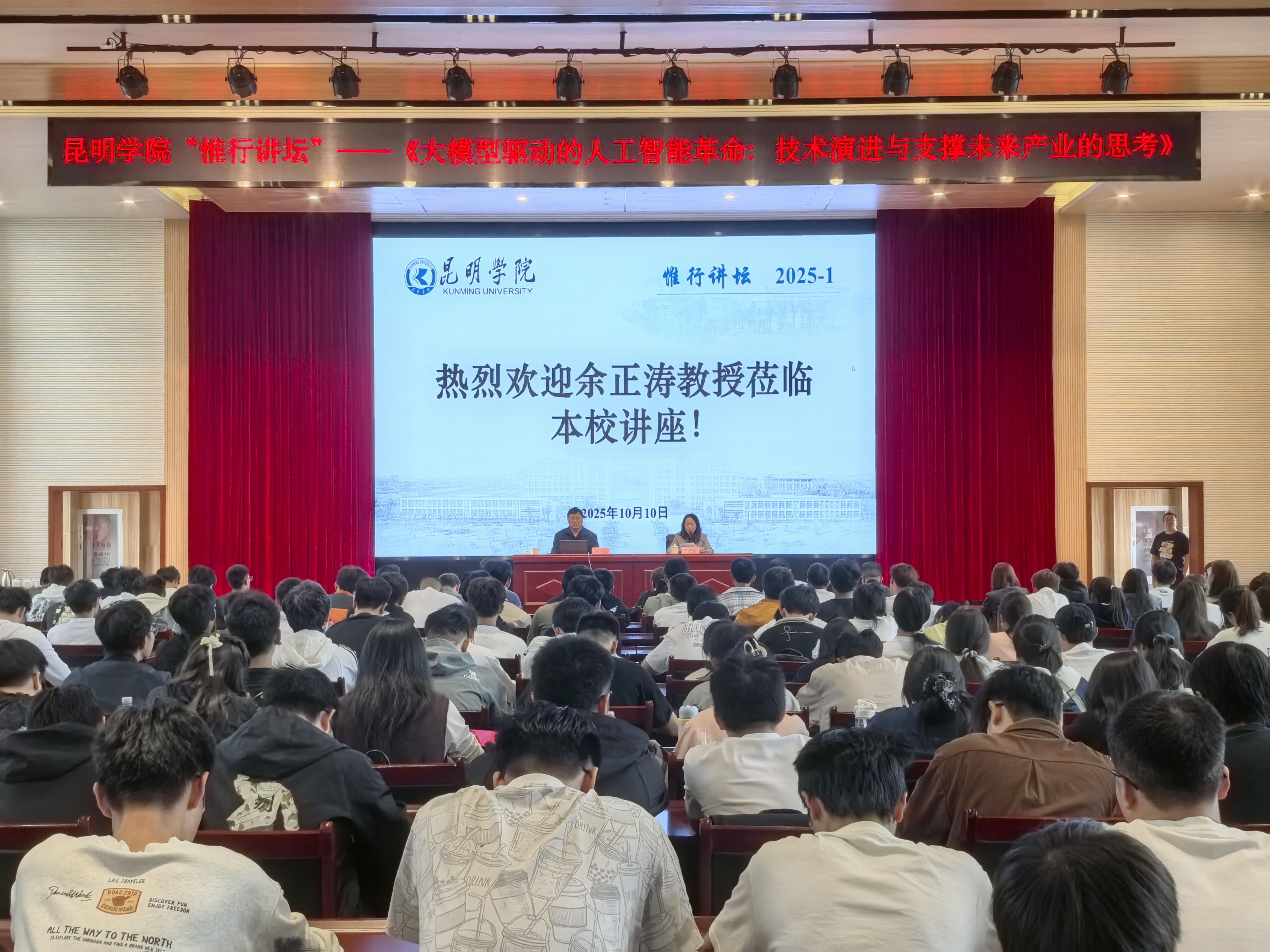 10月10日下午,昆明学院“惟行讲坛”在博学报告厅举行,讲座由国家“万人计划”科技创新领军人才、云南省人工智能重点实验室主任余正涛教授主讲。学校党委副书记、校长丁文丽教授主持讲座,科技处、经济管理学院、信息工程学院、建筑工程学院、机电工程学院等280余名师生参加。